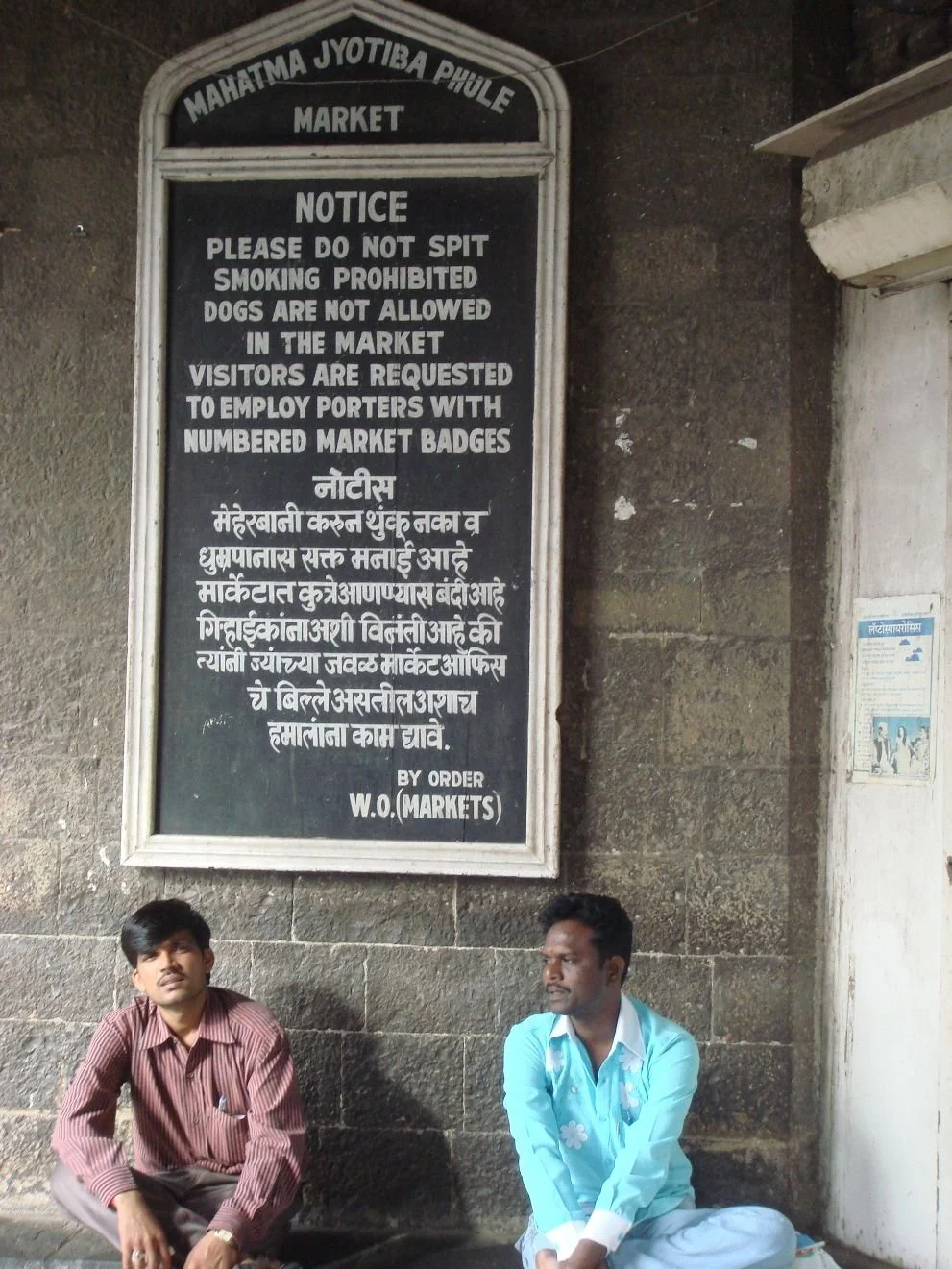 “Right this way sir,” he said, and led me to the nearest orange-stacked pyramid. He picked one, exchanged a few words with the seller, and told me how much to pay. After the orange was safely in my hand, I handed my officious friend some rupees, I turned around and walked out the entrance of the Crawford Market, passing the sign with the list of rules. And there, parked in front, was the same cab driver, standing there like he was my chauffeur. For a city packed with so many millions of people, I found it amazing how some people just kept popping back up in my life. “Okay, we go for Charlie now?” he said to me.
